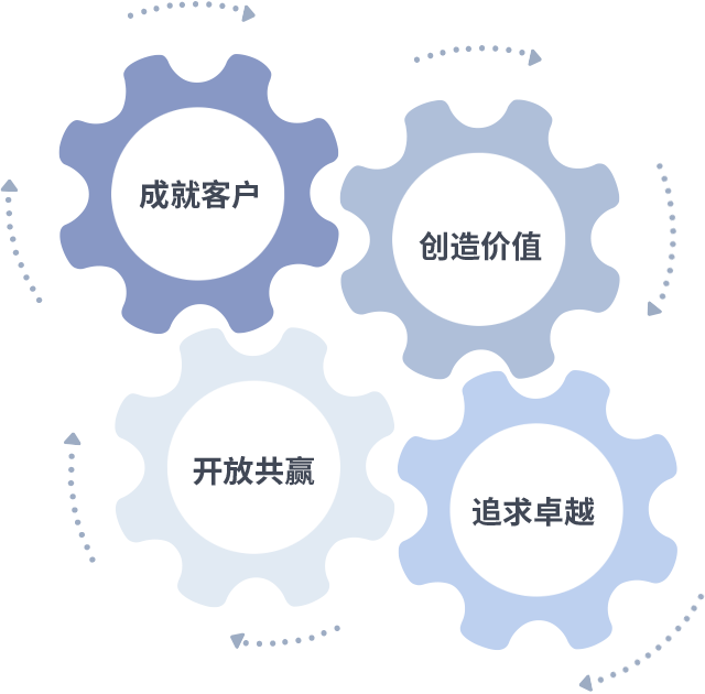 成就客户是一切决策的出发点,创造价值是衡量所有工作的标准,追求卓越是拉斯维加斯官方网站做事做人的态度,开放共赢是拉斯维加斯官方网站的格局也是最终的结果。价值观的齿轮环环相扣,推动着组织里的每个人不断向前。